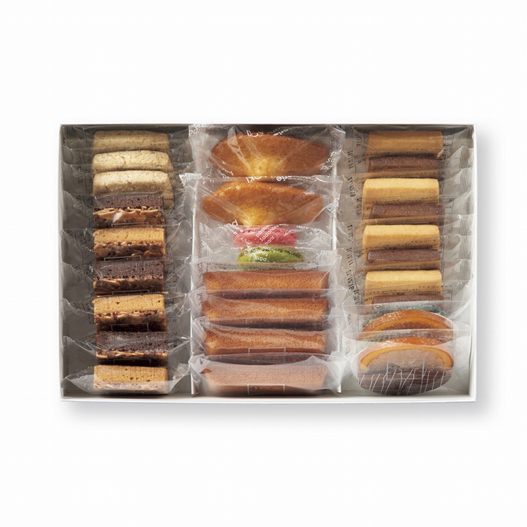 商品内容●セット内容:クッキー(ヴァニーユ・ショコラ各4)、サブレ ノワゼット×3、フロランタン(ナチュール・ショコラ各3)、トランシュ オランジュ ノワール・マドレーヌ シトロン ベルガモット各2、フィナンシェ ナチュール×4、マカロン ラスク×2