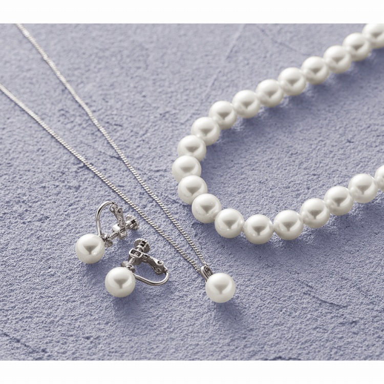 ●材質:人工貝パール(約径8mm)・真鍮(ロジウムメッキ)