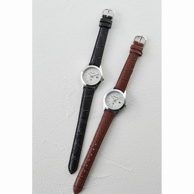 ●材質:本体/真鍮(パラジウムメッキ)、ベルト/(表)牛革(ワニ型押し)・(裏)合成皮革