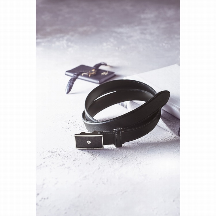 表面に牛革を使用したベルトは、シンプルながら上質な作りを感じさせ、ビジネスシーンにぴったり。