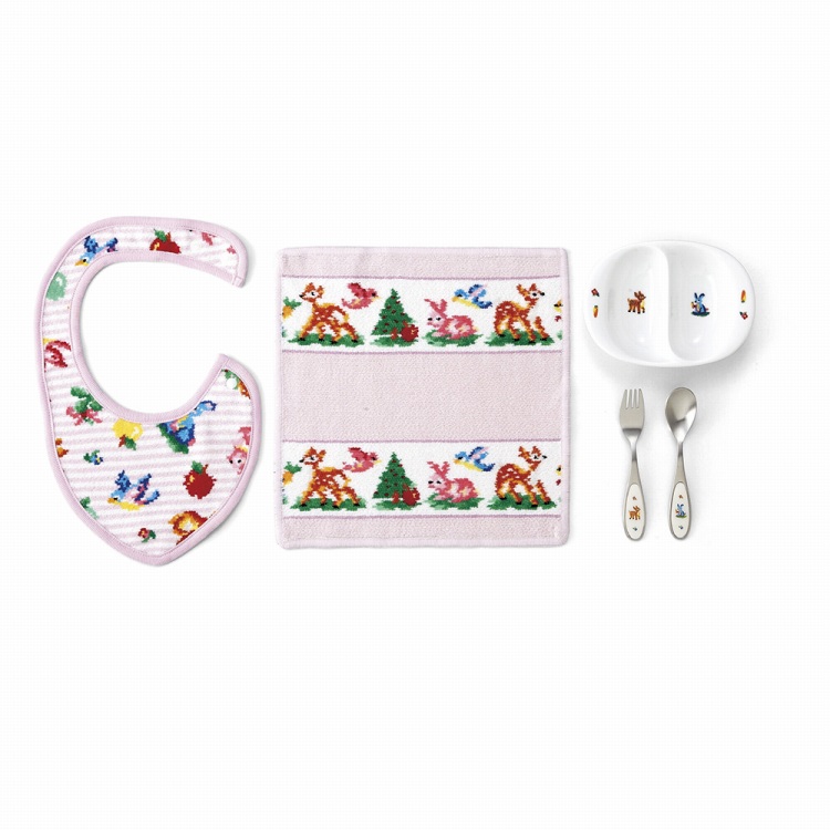 商品内容●商品:スタイ(約12.5×18cm・首回り32.5〜35cm)・ハンカチ(約25×25cm)・ミニプレート(約14.1×10.7×高さ3.3cm)・フォーク・スプーン各1