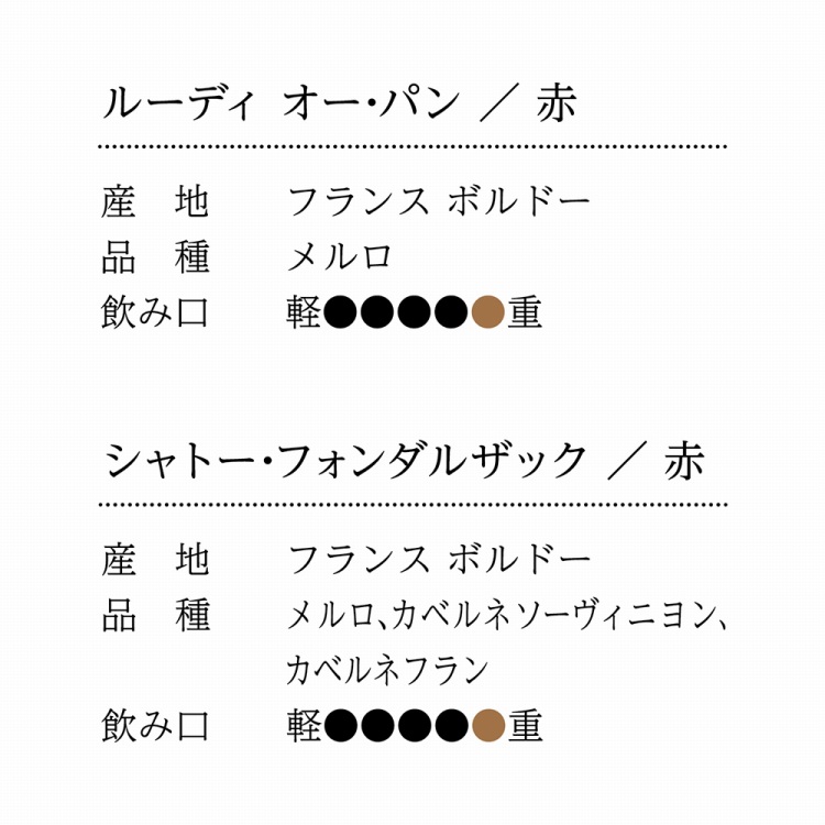 商品内容●ルーディ オー・パン750ml、シャトー・フォンダルザック750ml、ソムリエナイフ付