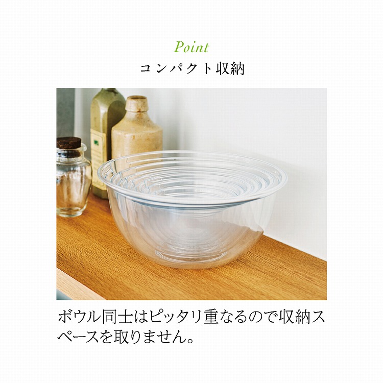 コンパクト収納ボウル同士はピッタリ重なるので収納スペースを取りません。