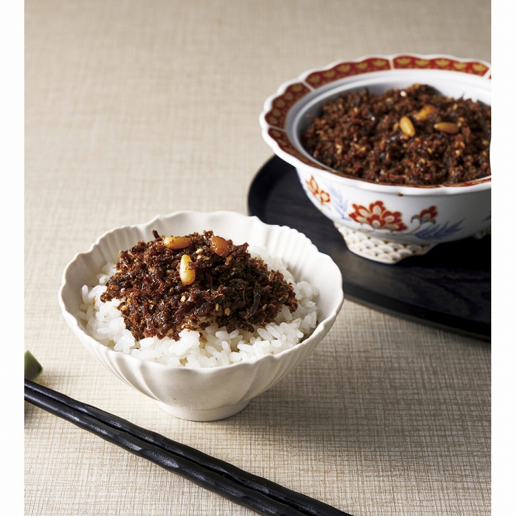 材料には鰹節をはじめ、白胡麻、きくらげ、松の実など山海の素材を使用し、しっとりとした独特の風味を作り上げています。