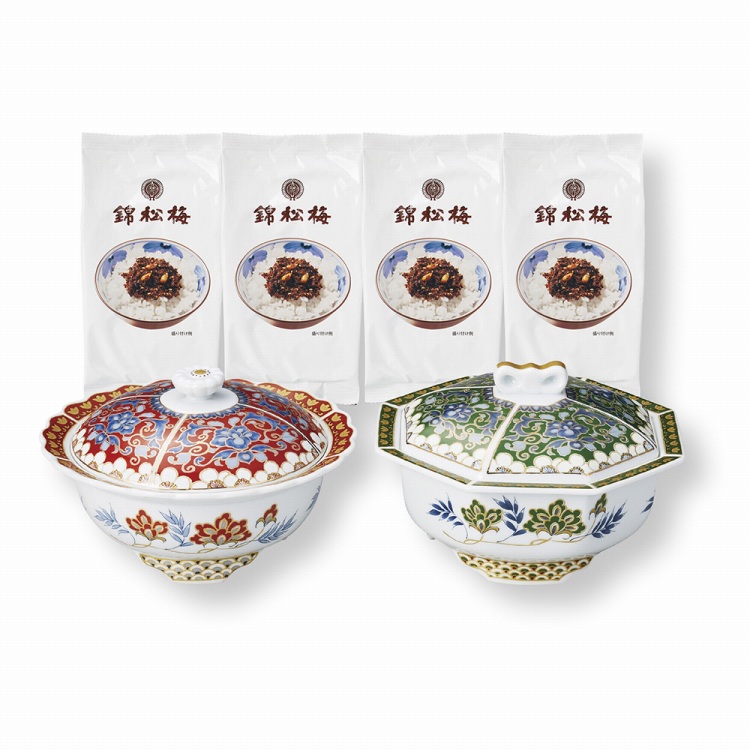 商品内容●セット内容:佃煮ふりかけ100g×4、有田焼容器(丸型/約径15.2×高さ9.1cm・角型/約14.6×14.6×高さ9.5cm各1・日本製)
