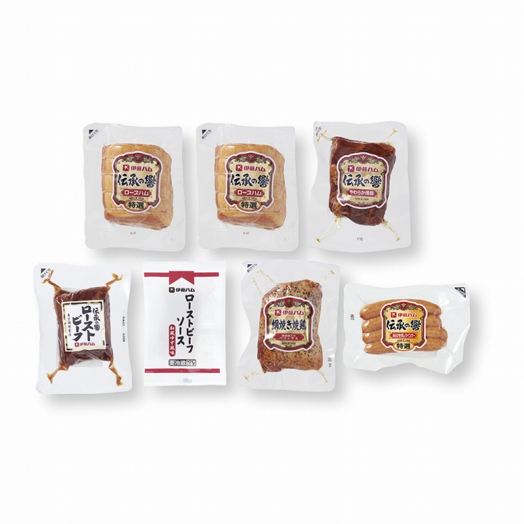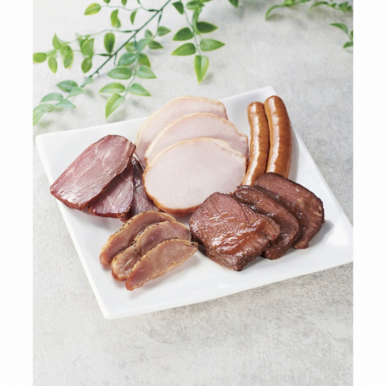 商品内容●セット内容:特選ロースハム320g×2、ローストビーフ(モモ/オーストラリア産他)200g・やわらか焼豚185g・網焼き焼鶏140g・あらびき燻しウインナー80g各1、ローストビーフソース付