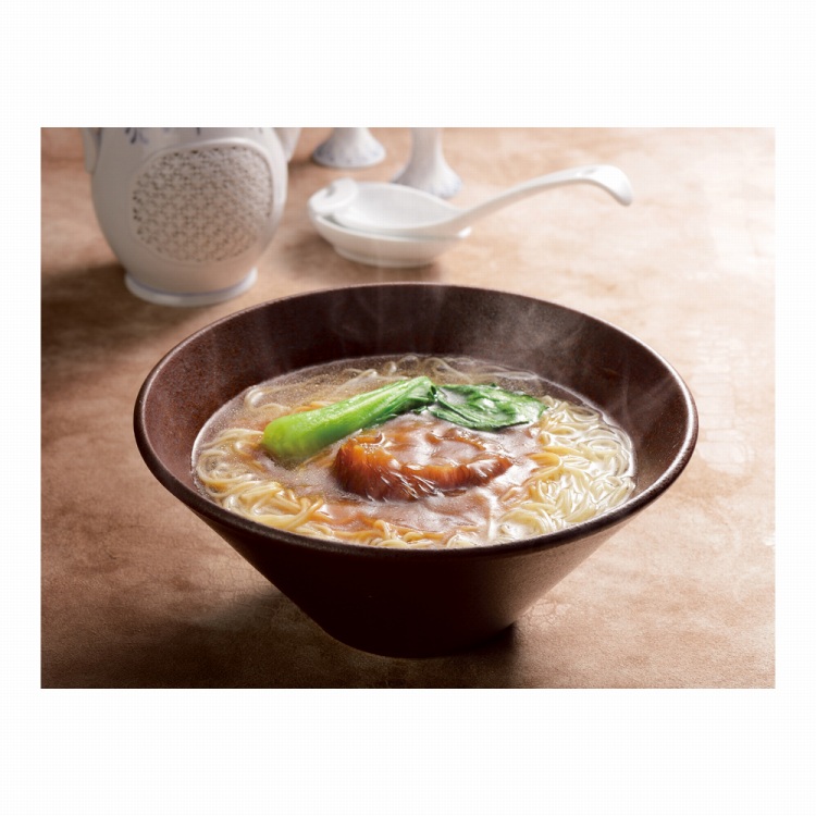 簗田料理長監修のご家庭で味わう贅沢なラーメン。料理長オリジナルの麺はツルツルと喉ごしの良い極細ストレートで、スープは旨みの凝縮された特製白湯スープ。丁寧に処理された三陸産のふかひれを入れた餡が麺と良く絡みます。