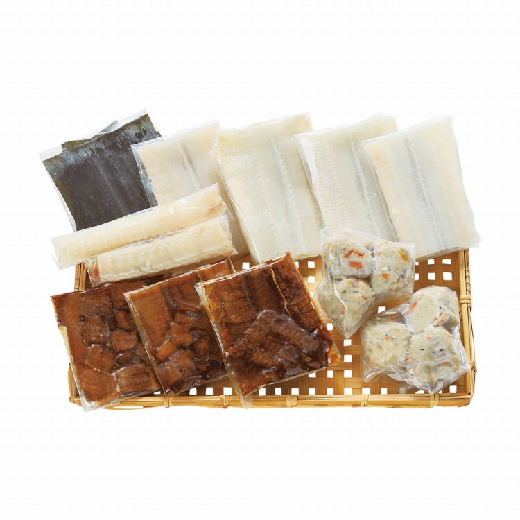 商品内容●セット内容:はも身200g、はも団子×6、はもひつまぶし50g×3、はもの骨・昆布付