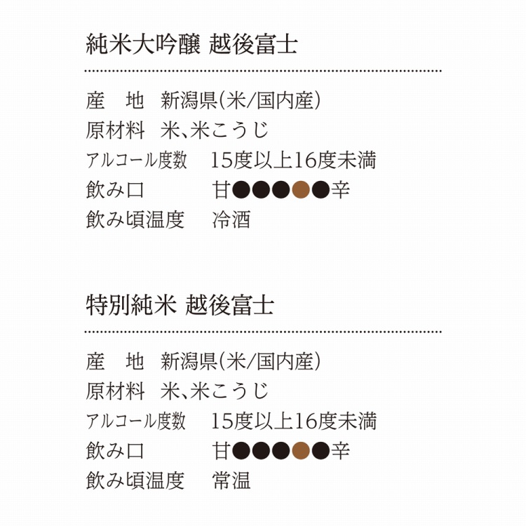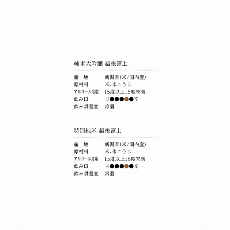 商品内容●純米大吟醸 越後富士1.8L、特別純米 越後富士1.8L