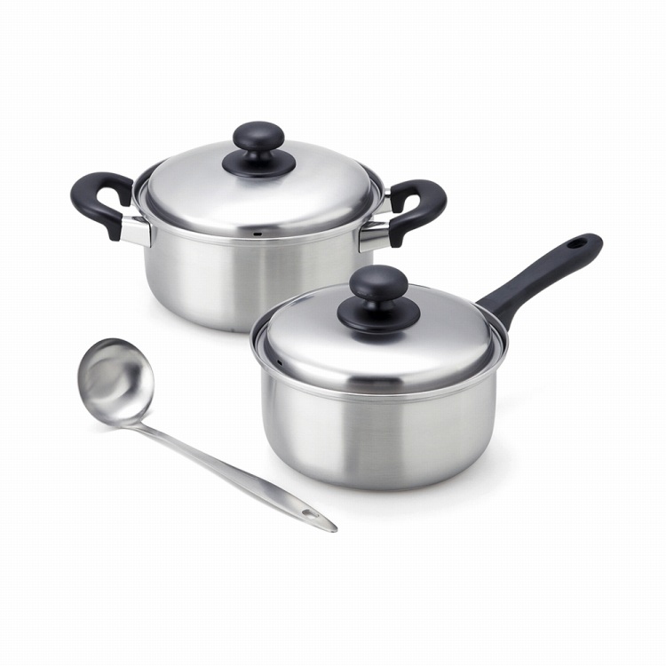 商品内容●商品:両手鍋(約径20×高さ10cm・満水容量3.1L・重量約840g)・片手鍋(約径18×高さ9.5cm・満水容量2.4L・重量約680g)各1