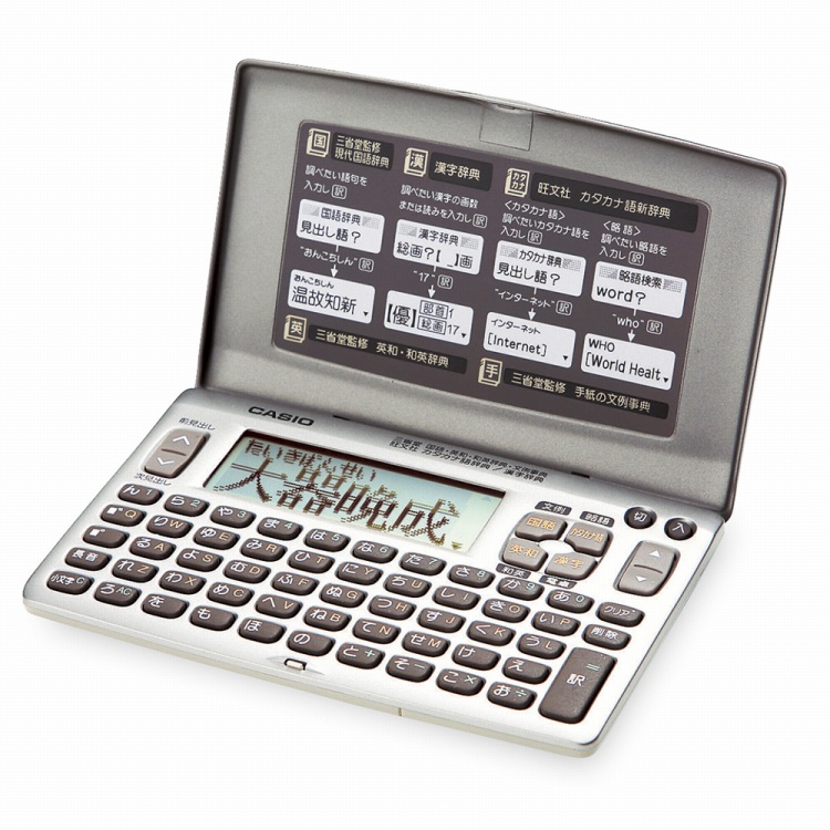 ●内容:国語(見出し語約50000語)・カタカナ語・漢字・英和(見出し語約47500語)・和英(見出し語約31000語)・手紙の文例事典・10桁電卓