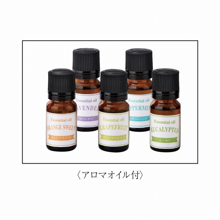 ●ランプ/中国製、アロマオイル(ラベンダー/ブルガリア製、ペパーミント/フランス製、オレンジスィート/ブラジル製、ユーカリ/オーストラリア製、グレープフルーツ/メキシコ製)