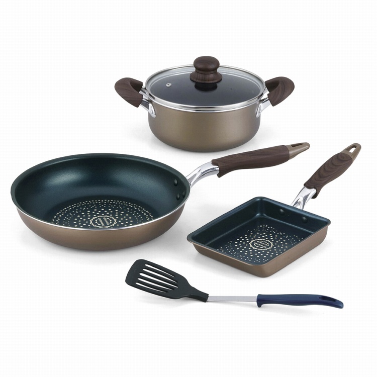 商品内容●商品:フライパン(約径26cm・重量約650g)・玉子焼器(約13×18×高さ3.5cm・重量約380g)・両手鍋(約径20×高さ9cm・満水容量2.7L・重量約1kg)各1