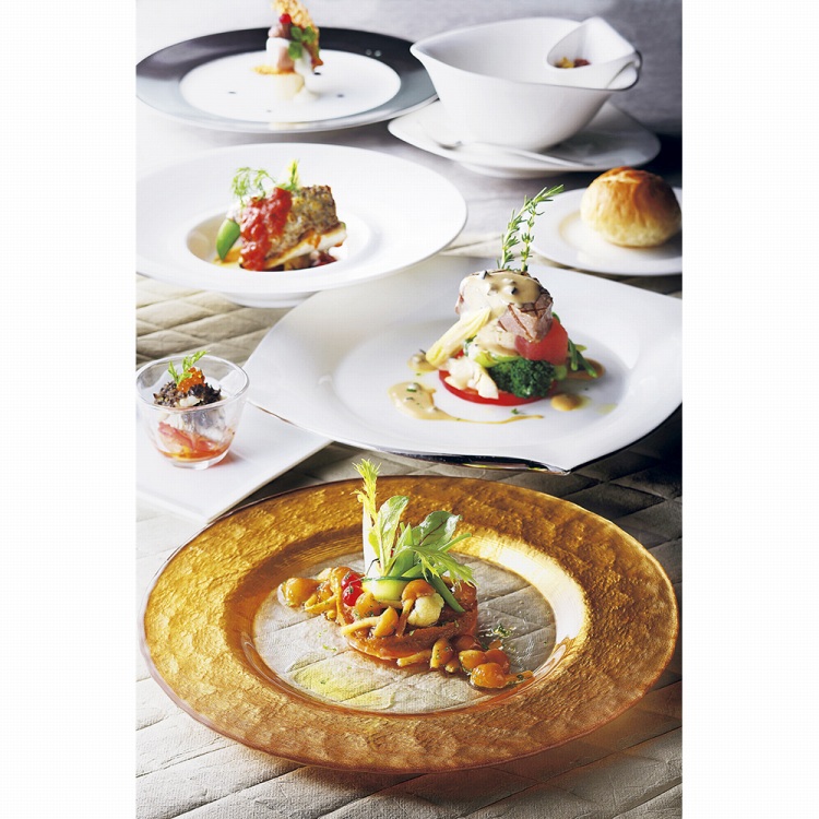●内容:乾杯酒・口取り・前菜・スープ・魚料理・肉料理・デザート※メニュー内容は一例です。