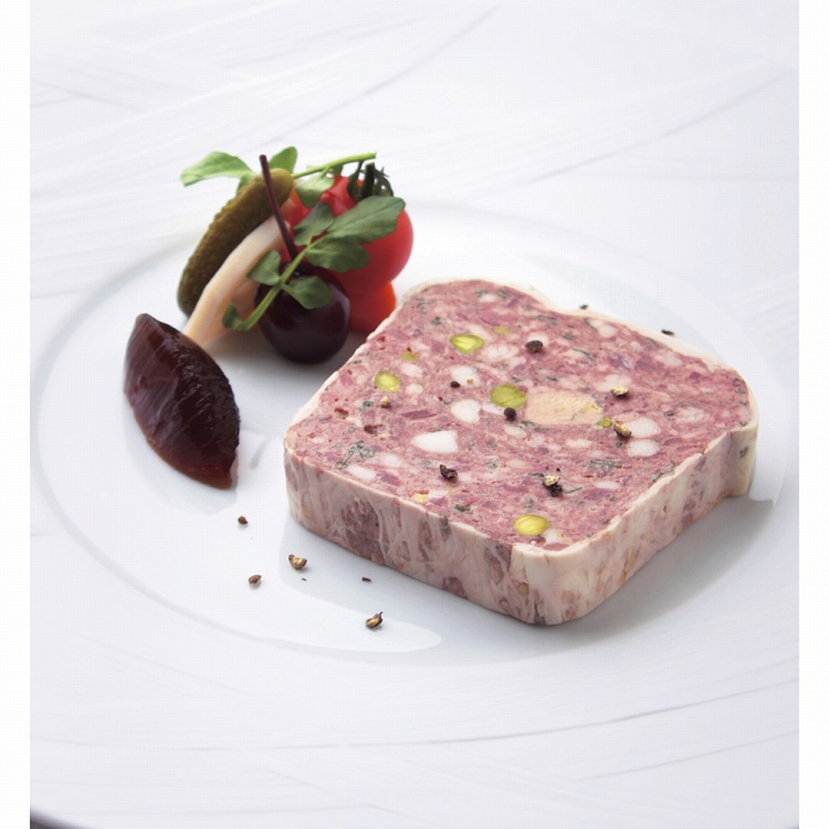 シェフ松澤氏の精密機械のような器用さとイマジネーションで、個々の素材を宝石のような美しい艶やかなテリーヌに仕上げます。