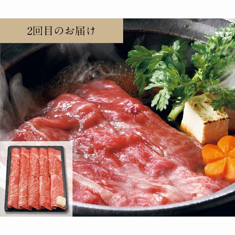 佐賀県の豊かな自然の中で、丹念に育まれた佐賀牛を、しゃぶしゃぶ用とすき焼用で2回に分けてお届けします。