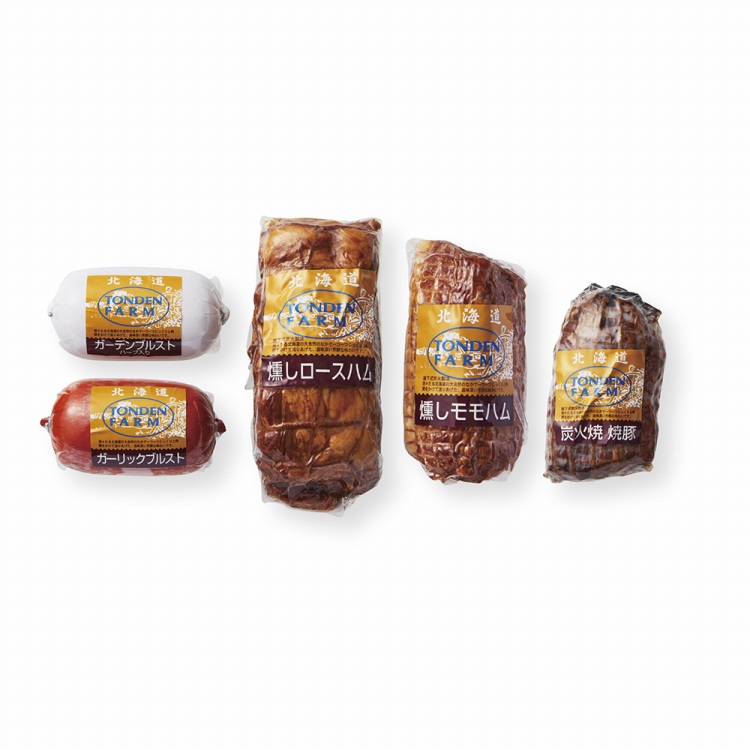 商品内容●セット内容:ガーデンブルスト200g・ガーリックブルスト200g・燻しロースハム600g・燻しモモハム300g・炭火焼焼豚200g各1