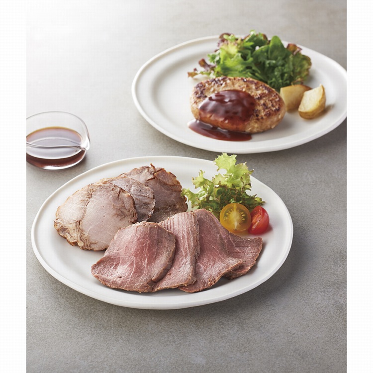 商品内容●セット内容:ローストビーフ(モモ/オーストラリア産)300g・合挽きチーズハンバーグ2個入(合計200g)各3、焼豚230g×1、ローストビーフソース・ハンバーグソース付