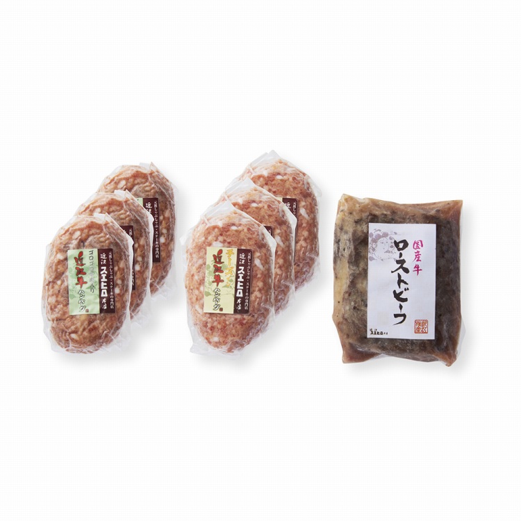 商品内容●セット内容:チーズイン近江牛合挽ハンバーグ120g・ゴロゴロ牛肉入り近江牛合挽ハンバーグ120g各3、ローストビーフ(モモ/国産)300g×1