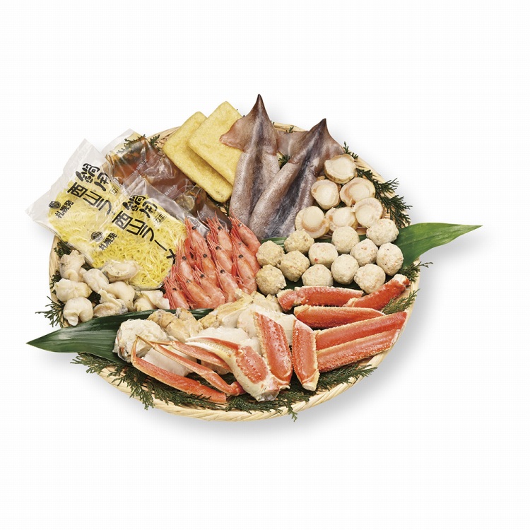 商品内容●セット内容:ボイルズワイガニカット600g×1、ボイル甘えび×12、ボイル帆立×6、つみれ(かに入・えび入・とりごぼう各4)、ツボ抜するめいか100g・油揚げ・ボイルつぶ貝60g・ラーメン80g各2、たれ付