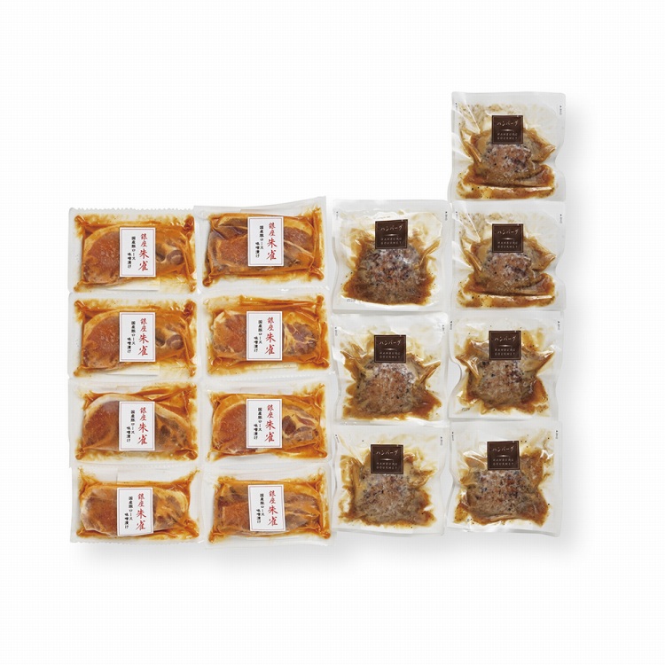 商品内容●セット内容:和風たまねぎソースのハンバーグ160g(固形量120g)×7、国産豚ロース味噌漬け125g×8