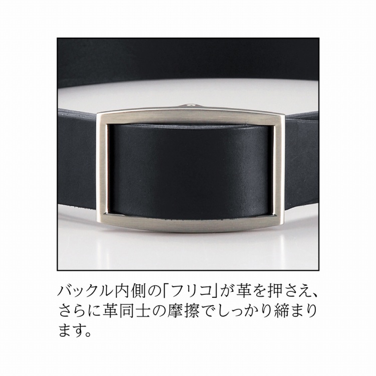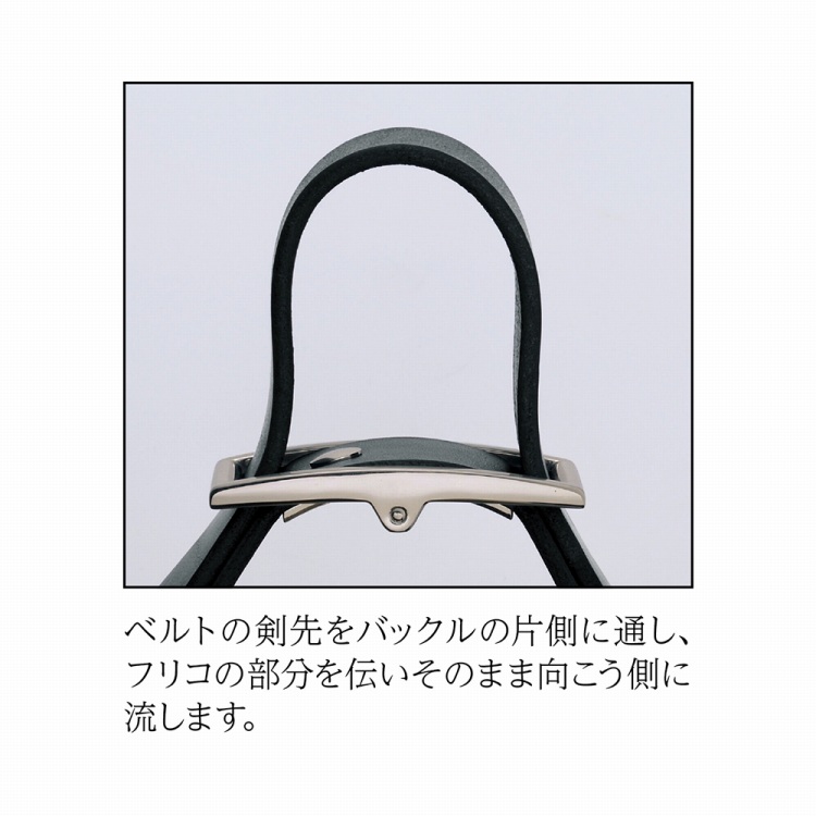 ピンのないフリコバックル式で、留め位置を自由に調整できます。
