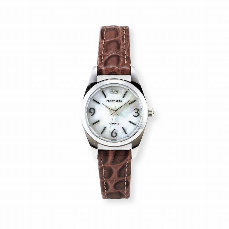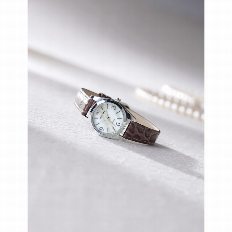 ●材質:本体/真鍮(パラジウムメッキ)、ベルト/(表)牛革(ワニ型押し)・(裏)合成皮革、文字盤/白蝶貝