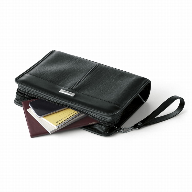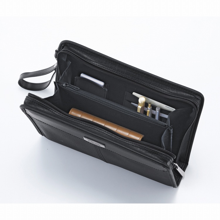 ●内容:内部/オープンポケット×1・ファスナーポケット付仕切り×1・カード入×2、背面/ファスナーポケット×1、開閉部ファスナー式、着脱式ストラップ