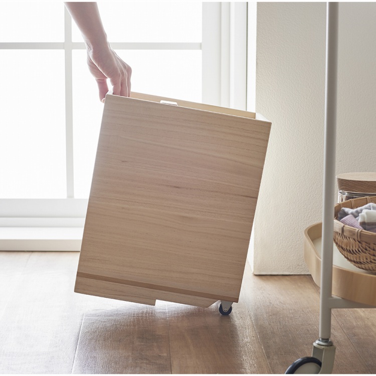 シンプルで温かみのある桐のもつ調湿性と防虫効果がお米を美味しく保ちます。アクセントにブラックチェリーを使った蓋の取手は、縁に引っ掛けることができ、地面に置かず衛生的に使える、口が大きくお米の出し入れがしやすい、奥行きがあるからコンパクトなすきま収納も可能、キャスター付きで約10kgのお米が入っても運びやすいなど、細かな気配りが嬉しい。「増田桐箱店」は創業1929年の老舗。大切なものをいれる「箱」を主役にしたいという想いから、新しい「kirihaco」のスタイルを生み出し、アイディアあふれるユニークな商品を次々と作っています。