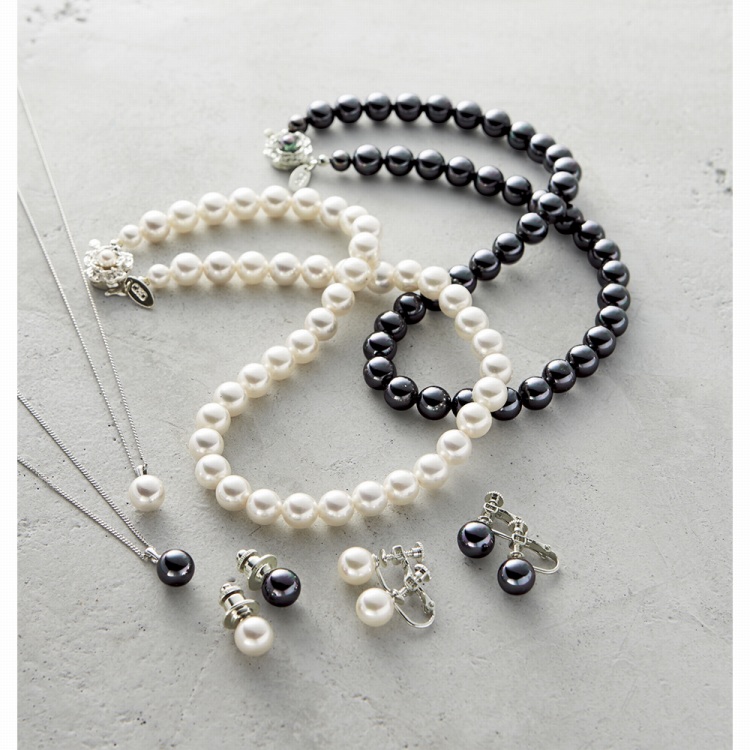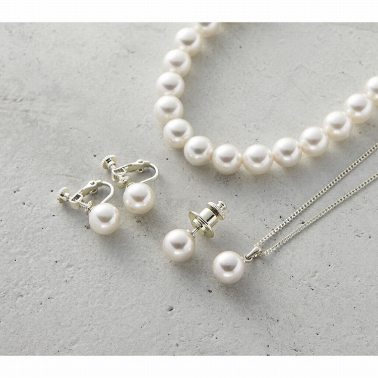 ●材質:人工貝パール(約径9mm・磨き)・真鍮(ロジウムメッキ)