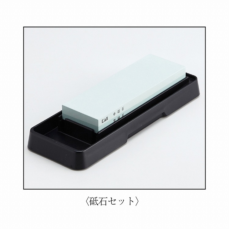 ●材質:包丁/(刃部)ハイカーボンステンレス刃物鋼・(柄部)ステンレススチール、砥石/緑色炭化ケイ素(中砥石面)♯1000・(荒砥石面)♯400・(砥ぎ台)ABS樹脂