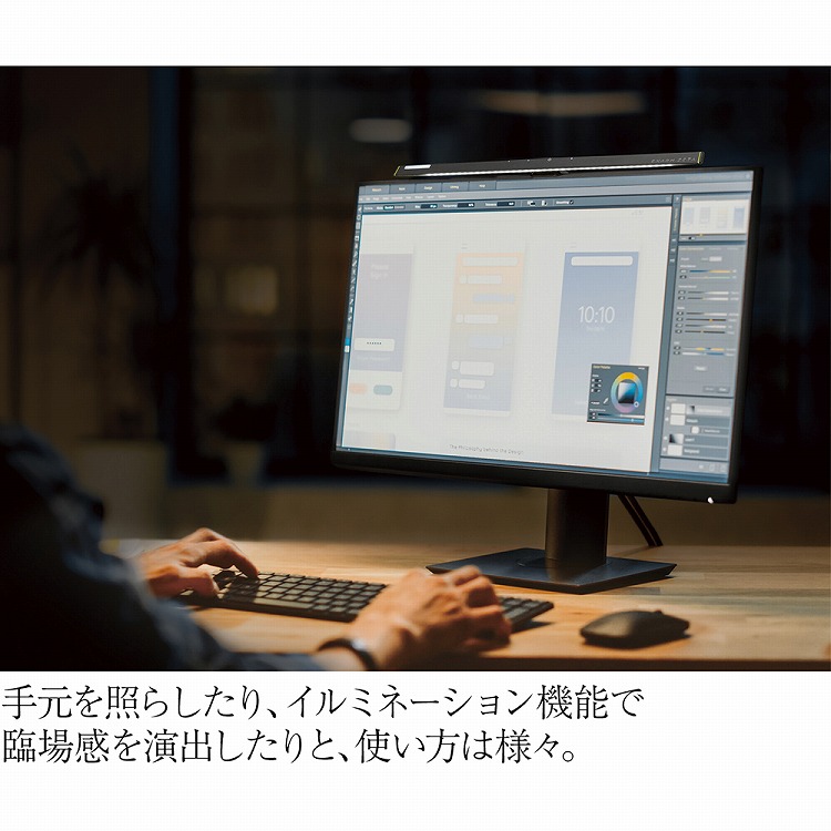 PC操作中の手元を効果的に照らすPCモニターライトです。