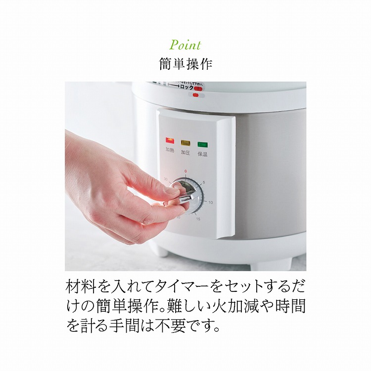 材料を入れてタイマーをセットしたら後は圧力鍋におまかせ。