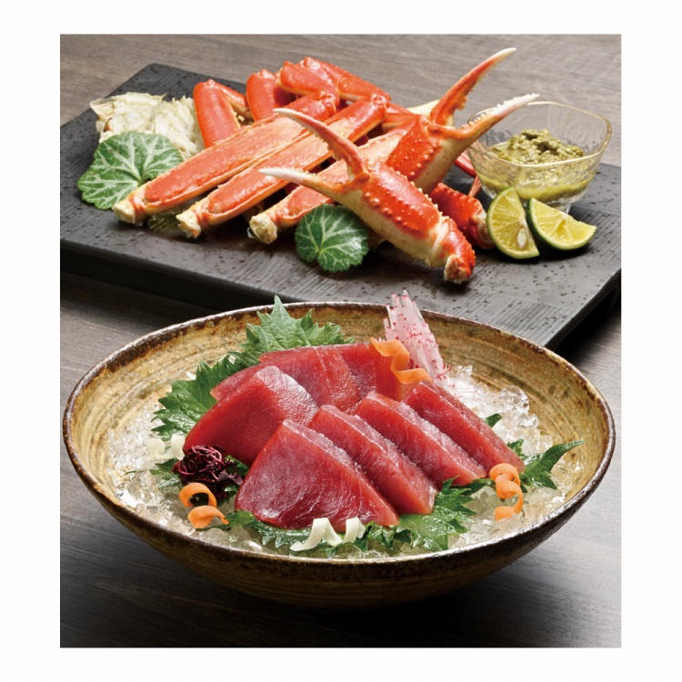 商品内容●セット内容:ボイルズワイガニ姿2杯(合計1.2kg)、南まぐろ(赤身サク200g×2)