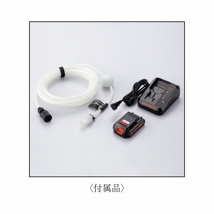 ●内容:水流調整5段階・水道ホース内径約1.5cm対応・給水スリムホース(約6m)キット・18Vリチウムバッテリー・充電器付・約60分充電式・連続使用時間約12分(High時)・約19分(Low時)・最大吐出圧力2.4MPa