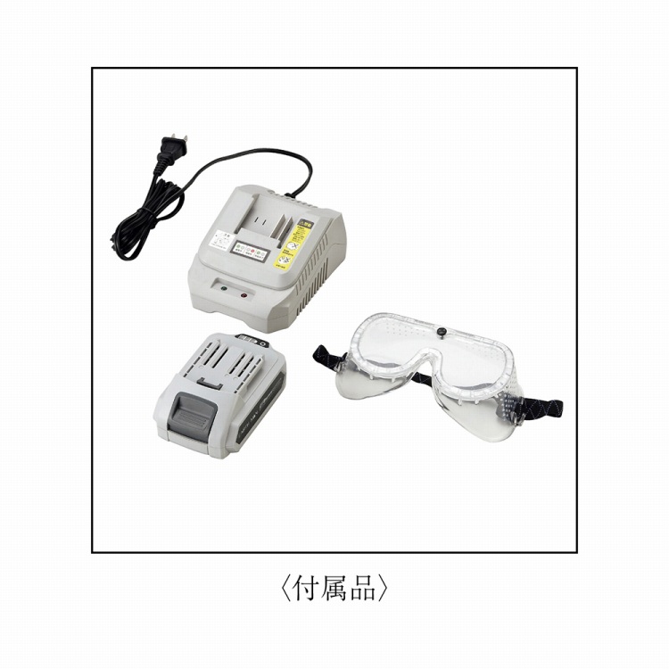 ●内容:両刃駆動方式・約70分充電式・連続使用時間約25分・ブレードカバー・バッテリーパック・充電器・ガーデングローブ・作業メガネ付