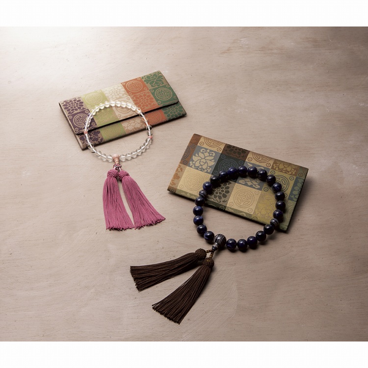 葬儀、法要などでは、念珠を持つことが礼儀とされ、身だしなみのひとつとして用意しておきたい弔事のアイテムです。