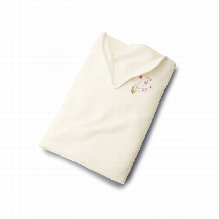 首をすっぽり包み込んで温かさを逃がさない首元のカットがポイントの、ロングタイプ毛布です。