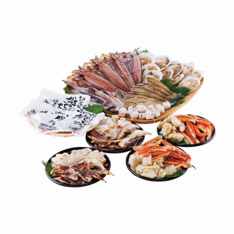 商品内容●セット内容:ボイルズワイガニカット500g・生タラバガニカット500g各2、帆立片貝×10、姫鱈一夜干し×8、たこ入つみれ×18、鮭のちゃんちゃん焼(秋鮭味噌漬切身80g・味噌たれ付)・ツボ抜するめいか100g・ほっけ一夜干し各4