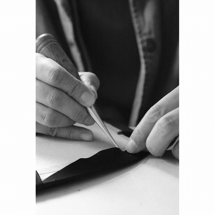それぞれのパーツを貼り合わせながら仕上げる伝統技法で、持ち手以外縫い目が無いのもポイントです。
