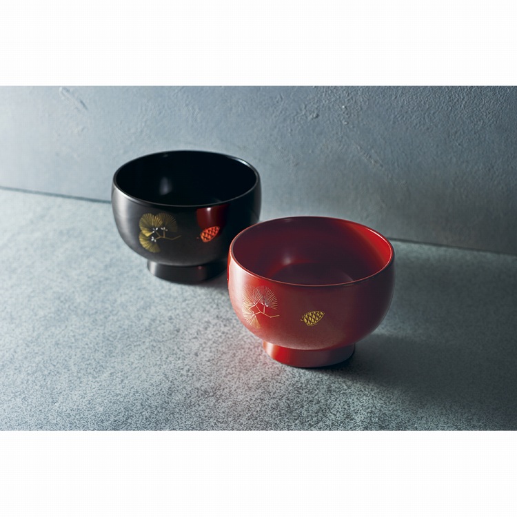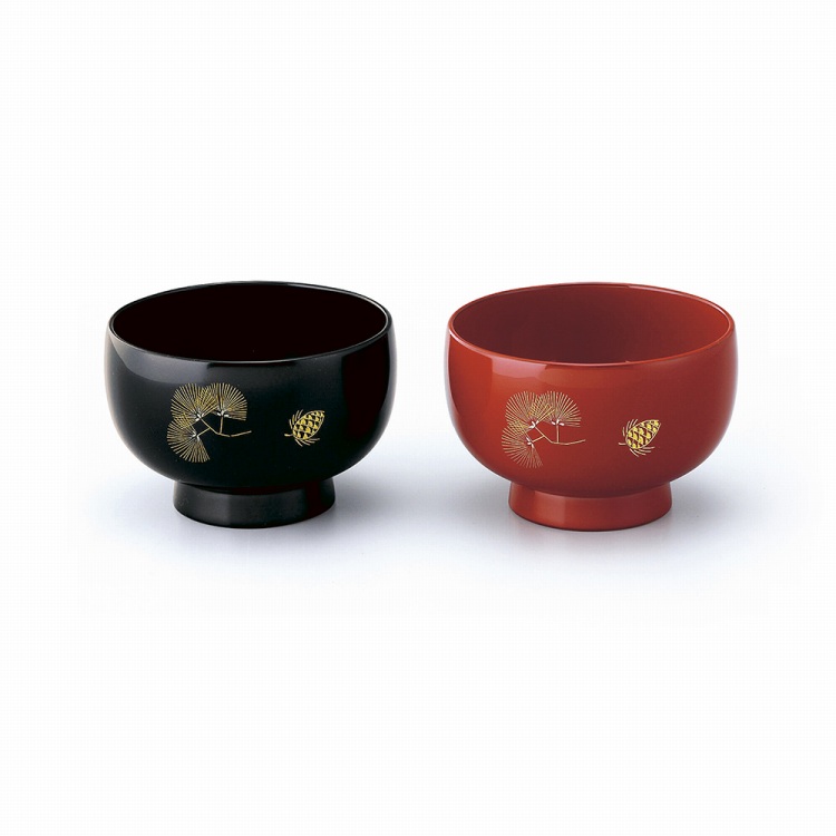 夫婦汁椀 沈金松紋