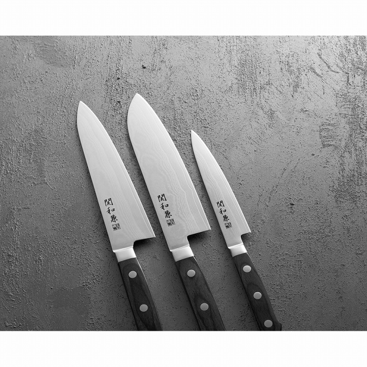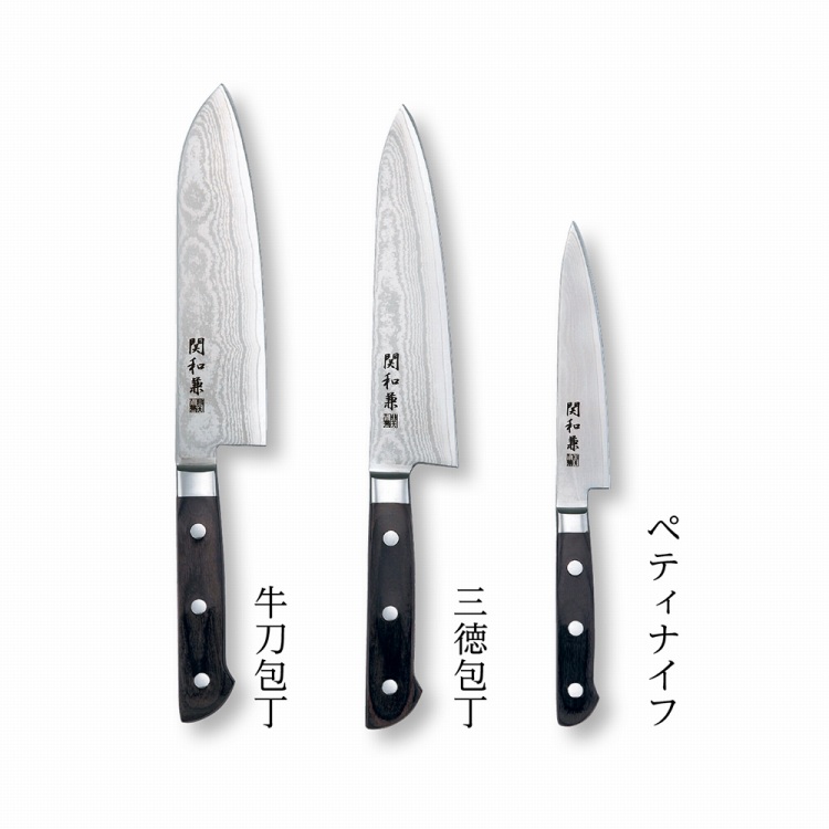 商品内容●商品:牛刀(刃渡約18cm・全長約30cm)・三徳(刃渡約17cm・全長約29cm)・ペティナイフ(刃渡約13.5cm・全長約24cm)各1