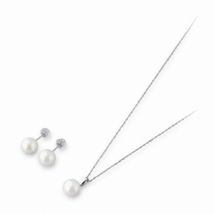 ●材質:ペンダント/あこや真珠(約径8mm)・プラチナ900・プラチナ850、ピアス/あこや真珠(約径8mm)・プラチナ900