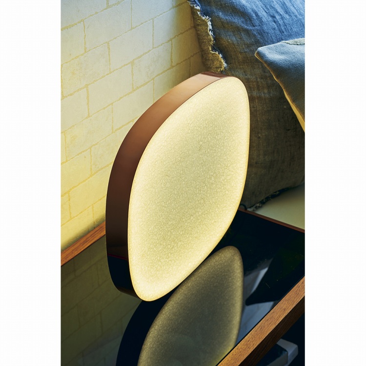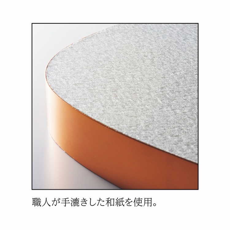 手漉き和紙の手触りが感じられる真っ白な盤面と、職人の技による磨き上げられた銅の硬質なフレームのコントラストが美しい、“and-on”。点灯すると、その表情は一変する。インテリアと一体感が生まれる、弧を描いた銅のあたたかな輝き。自然の創り出す刹那を切り取った、落水紙の模様が浮かび上がり、表から、裏から、繊細な灯りであたりを満たす。しとしとと恵みの雨が降るように、優しい時間がじんわりと滲み、ゆっくりと溢れていく。清廉な空気と冷たく澄んだ水の恵みを受け、1枚1枚手漉きをしている小川和紙職人「手漉き和紙たにの」の谷野氏の漉く落水紙をあしらった、伝統的な行燈を再解釈したハーモニックオリジナルの“and-on”。紙の上に落とす水滴が描く模様は自然の造形でひとつひとつ表情が異なるのを慈しんで欲しい。メイド・イン・八潮にこだわる「ワイ・エス・エム」。光と板金を熟知した職人が作る照明。小さな町工場で生み出されている端正なプロダクトは、どこかひとの手のぬくもりを感じる、流行に左右されることのないスタンダードになっていくはずだ。