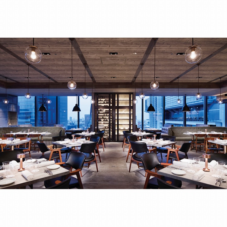 グレーを基調とした店内には、古材の持つヴィンテージ感、そして畑や自然を意識した豊かな緑の家具が相まって、まるで長年愛されてきた老舗のような空気が漂います。