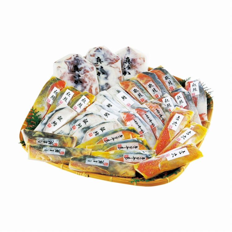 商品内容●セット内容:秋鮭甘味噌漬80g・しまほっけ甘味噌漬80g・紅鮭粕漬80g・銀鱈粕漬80g・トラウトサーモン粕漬80g・真鱈粕漬80g・紅鮭西京漬80g・キングサーモン西京漬80g・アラスカ吉次西京漬100g・真いか粕漬150g各3