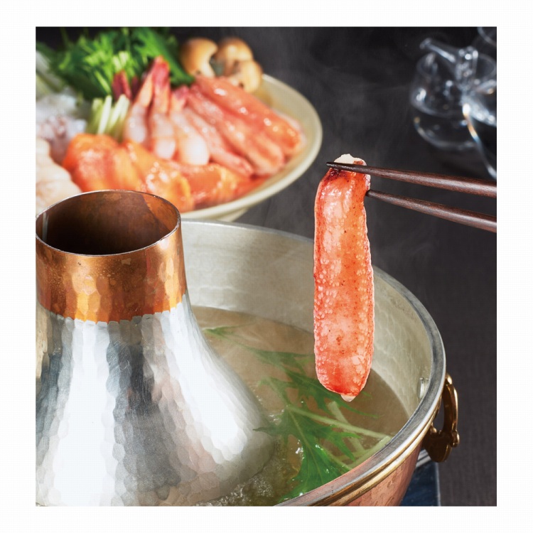 カニをはじめ海鮮素材をしゃぶしゃぶ用にむき身・スライスにしました。