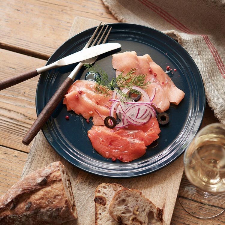 鮭3種を塩と砂糖、胡椒のみで味付けし、独自ブレンドしたサクラ・ナラ・ヒッコリーのチップで燻しました。
