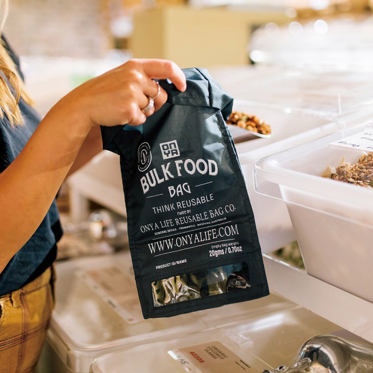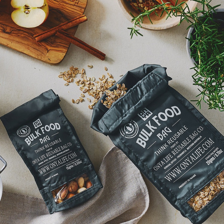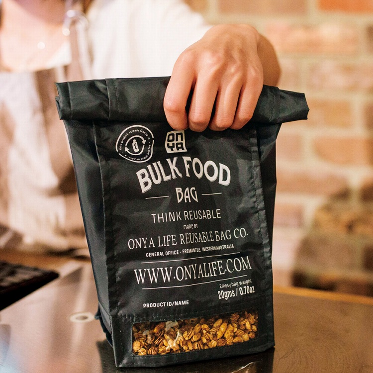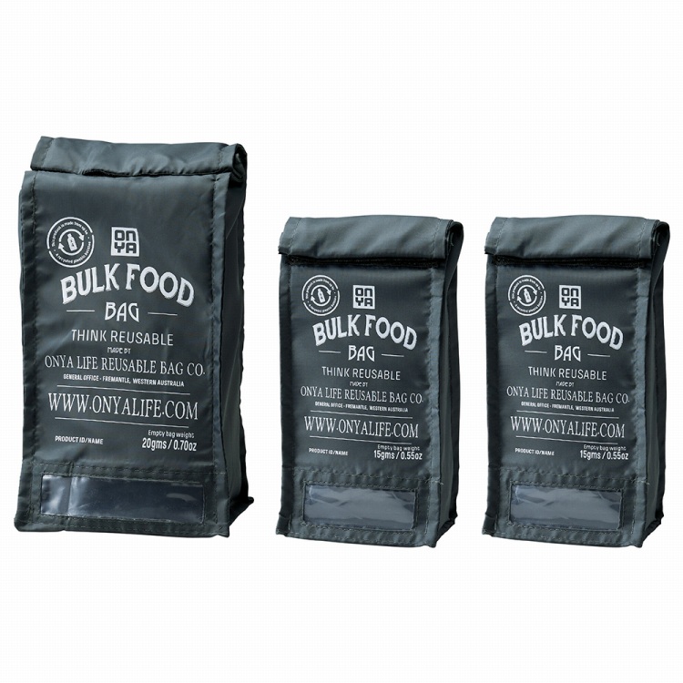 BPAフリーで食品に安全なリサイクルプラスチックドリンクボトルから作られているバルクフードバッグ。軽くて嵩張らずペタンとたたんで持ち運びでき便利です。透明な窓でいくつかの種類を買ったあとも見分けがつきます。