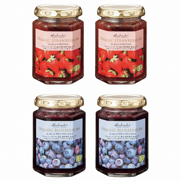 有機果実、有機砂糖、有機レモン濃縮果汁を使用し、有機JAS認証工場で作られたオーガニックジャムの詰め合わせです。